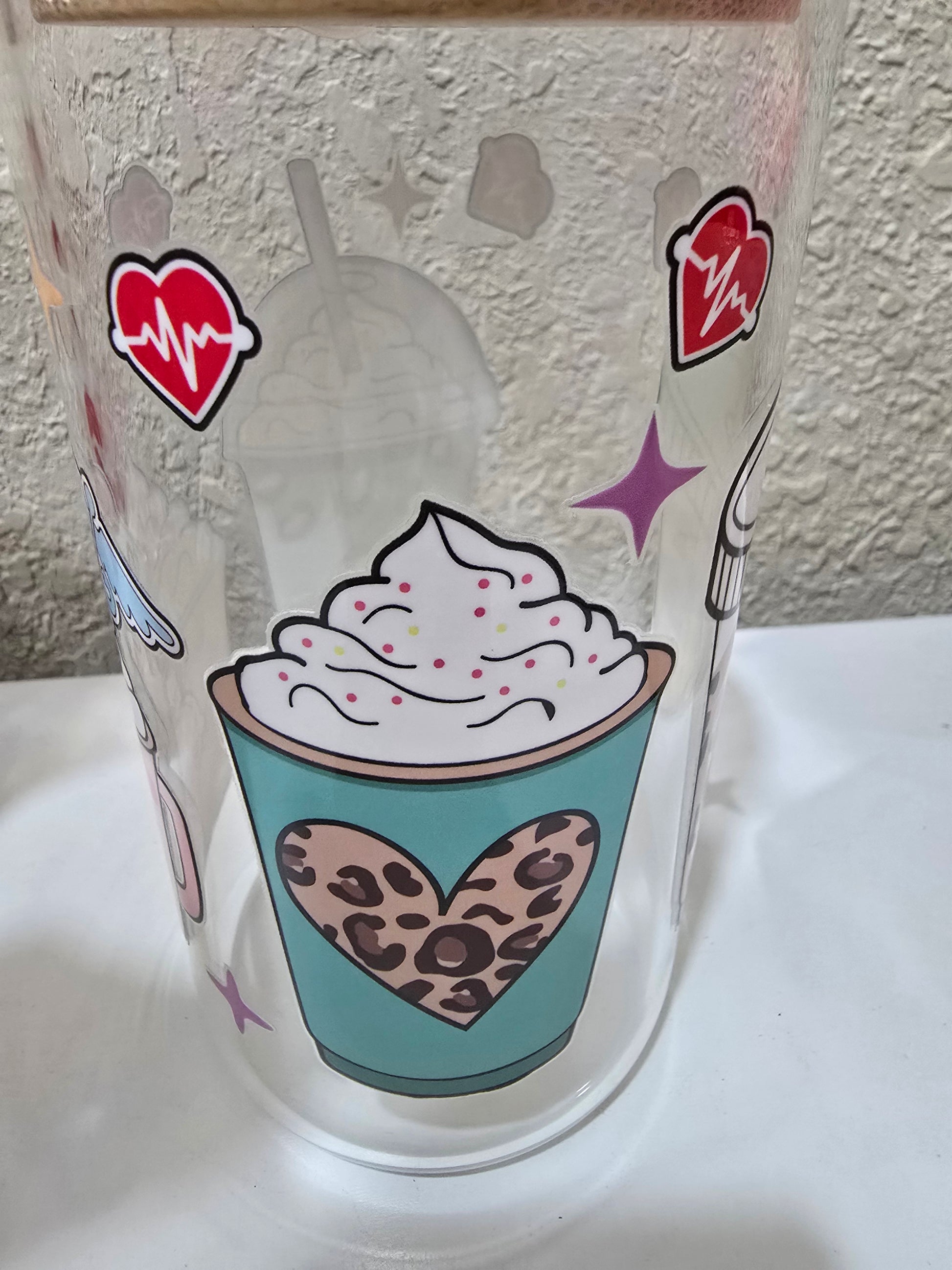16 oz. Heart Monitor Nurse Doctor Glass Cup Iced Coffee Cocktail Tumbler with Lid and Straw
