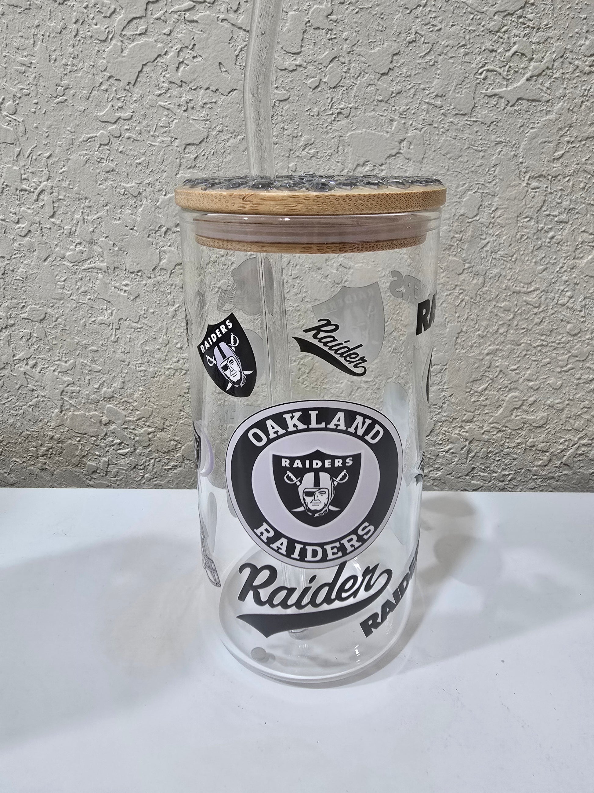 16 oz. Las Vegas Raiders Glass Cup Iced Coffee Cocktail Tumbler with Lid and Straw