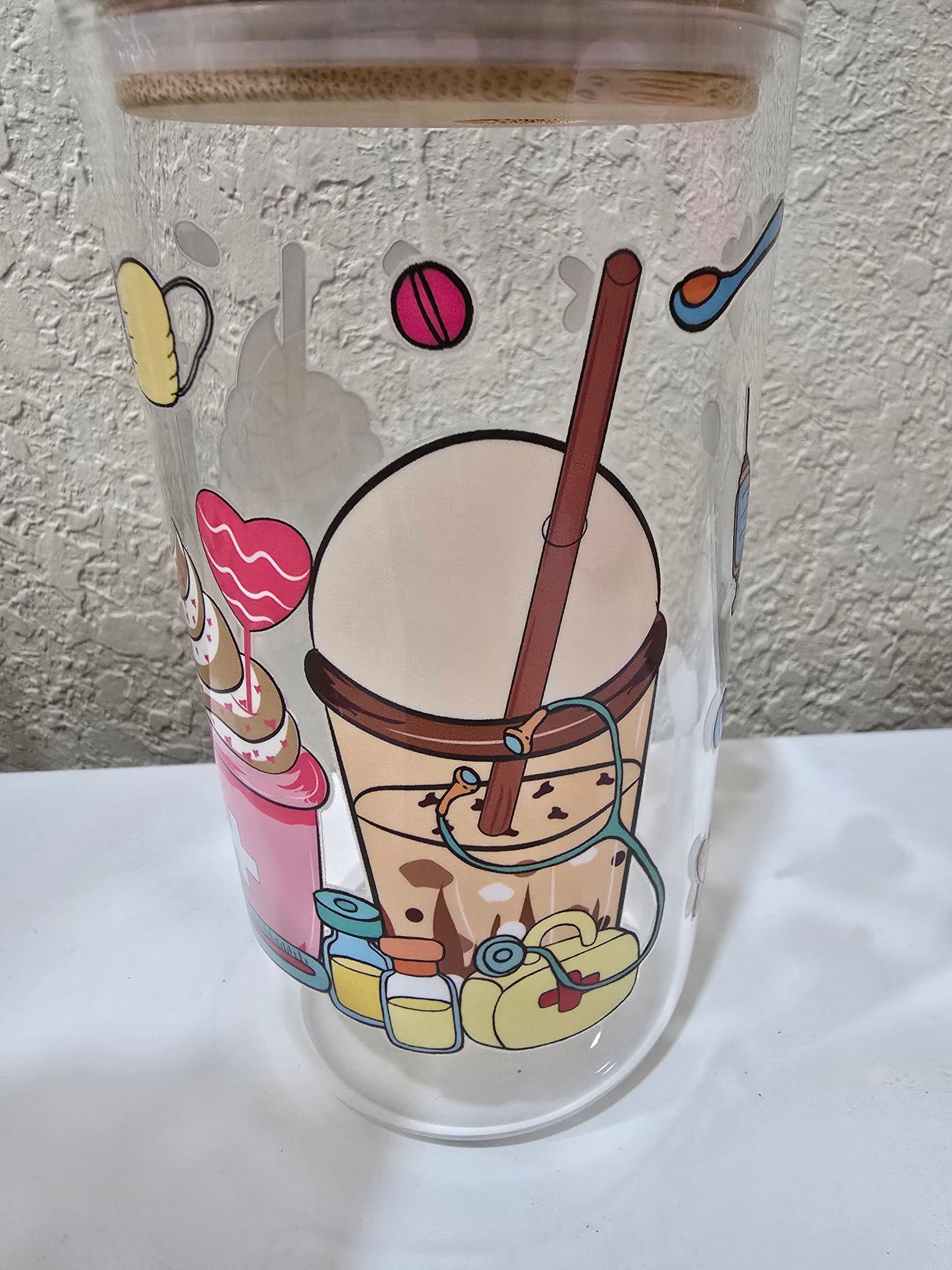 16 oz. Medical Nurse Doctor Glass Cup Iced Coffee Cocktail Tumbler with Lid and Straw