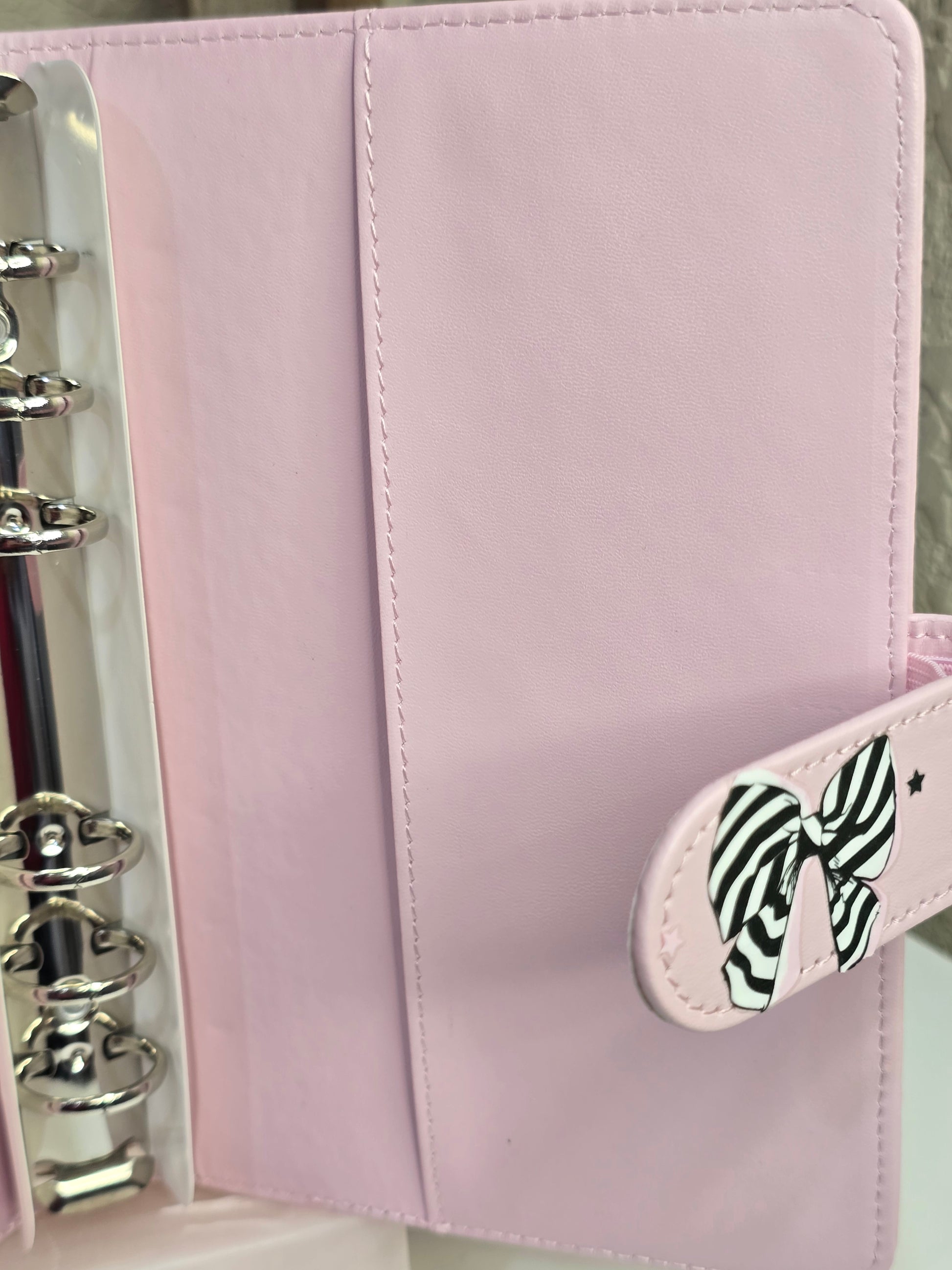 Pink Bow Planner 6 Ring A6 Leather Binder Shell for Budgeting Journaling Planning with Magnetic Buckle Closure